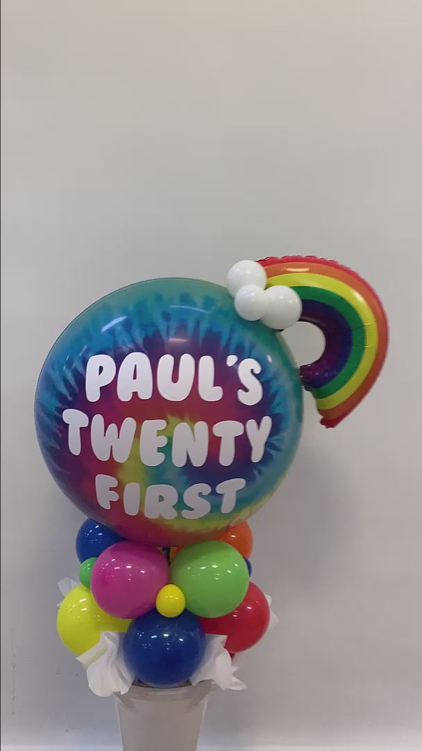 Rainbow Centrepiece With Small Custom Message Bubble Balloon