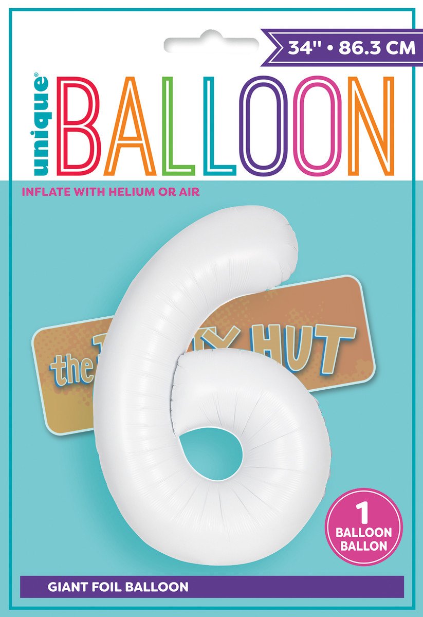 Balloon Foil Megaloon Num 6 Matte Bright White 86cm Last Chance Buy