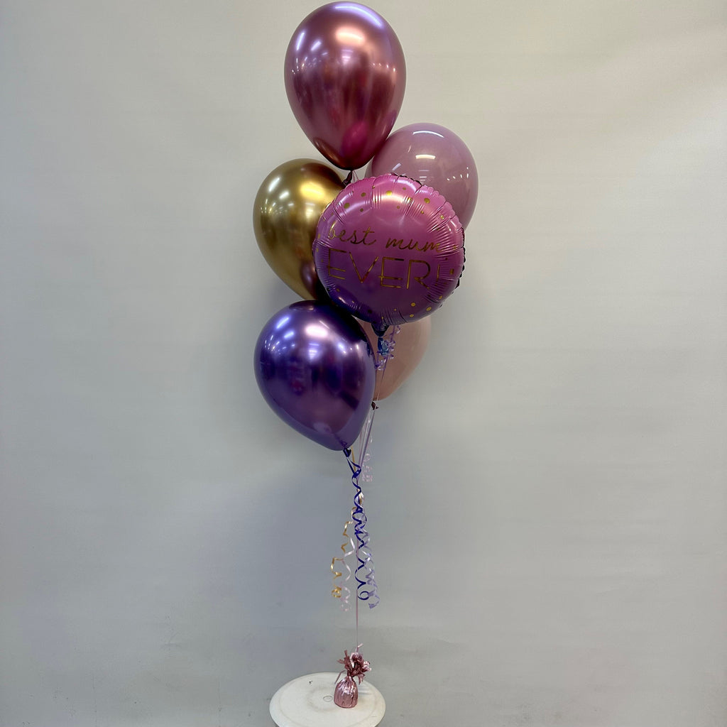 Looking for a gift that will make your mom feel like a queen on Mother's Day? Look no further than our stunning Best Mum Ever Balloon Bouquet! This elegant and adorable bouquet is the perfect way to celebrate the amazing woman in your life. With a beautiful mix of golden and pink balloons, this bouquet will bring a smile to your mom's face and a warm feeling to her heart. So why wait? Surprise your mom with this delightful gift and show her just how much you love and appreciate her!