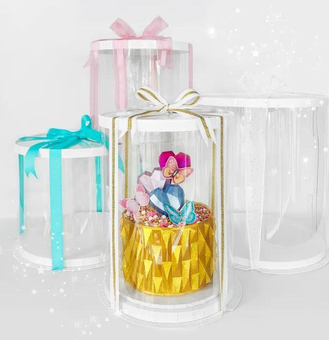 The Clear Cylinder Box is the display of your dreams! Transport and fully display your gorgeous creations with confidence in this sturdy, durable box. This set comes with 3 pieces; a base, a lid and a clear acetate strip. Ensure to remove the protective film on the acetate strip prior to putting your cylinder box together!