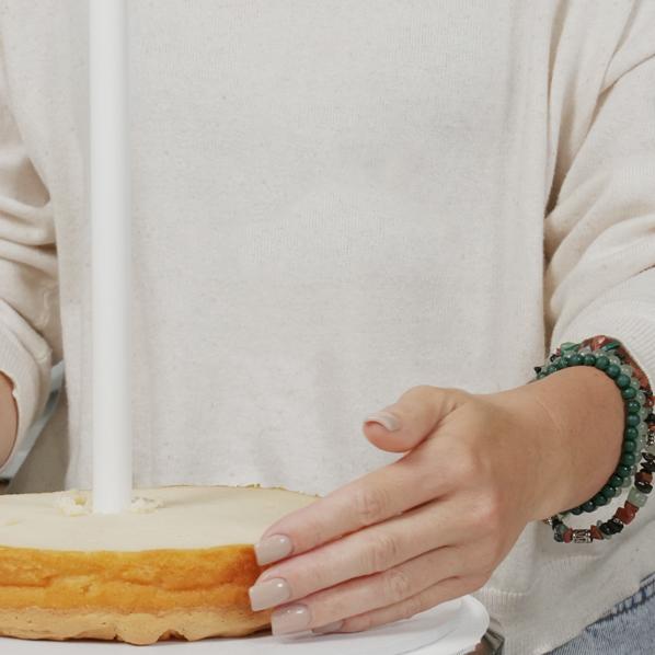 Simply peel the adhesive backing from the mount and adhere to the centre of your masonite board. Insert 1 x large 16mm diameter cake dowel into the mount. Your lovely cake is now set to receive all the support it will ever need.
