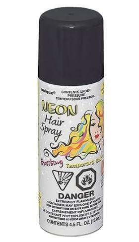 The aerosol can contains 133ml of black coloured hair spray. Use shampoo to wash out this temporary hair spray. Store the aerosol can at room temperature, out of reach of children, away from heat sources and do not inhale or use while smoking. Only use in well-ventilated areas. Misuse can be harmful and fatal. Please read the safety instructions.