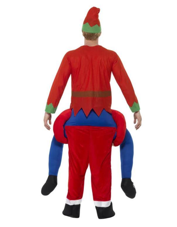 HO HO Merry Christmas! Have some fun with Santa when you're wearing our Piggyback Santa Costume, with Mock Legs This great costume comes with a One Piece Step in style with a stuffed Santa and attached shoe covers for your feet. The padded Mock Legs are attached so it looks as though you're riding on the Santa's back