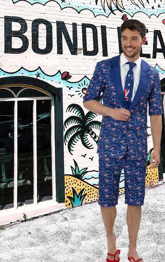 Stand Out Suit Australia Flag Mens, Short Sleeve Jacket & Shorts, Flag Repeat Print