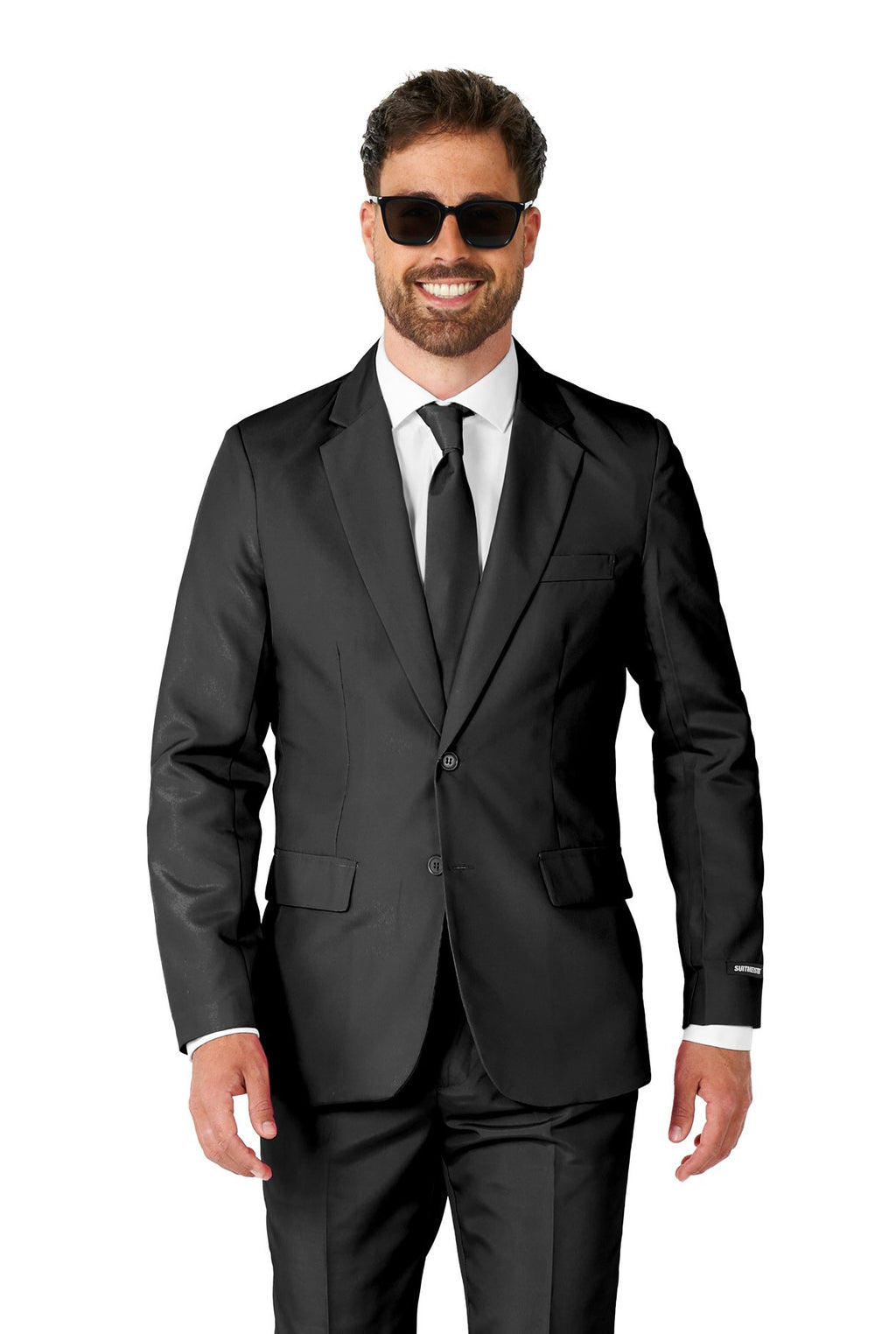 Bring suave style to the party without breaking the bank with this all-black suit! Made for those who want to look dashing without draining their wallet, this classic black ensemble—featuring matching pants, jacket, and tie—fits in at any event. Perfect for channeling your inner secret agent at a spy-themed bash, showing up as the "undercover boss" at work parties, or giving a Gatsby-style nod at a roaring ’20s night. Whether it’s a masquerade ball, black-tie affair, or even a Halloween vampire costume, this black suit has you covered—affordably and stylishly!