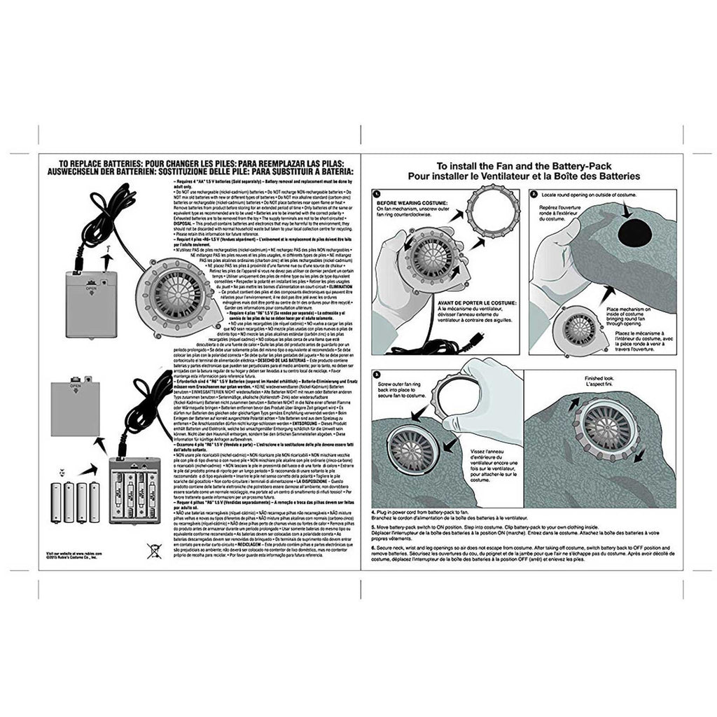 ·Battery pack requires 4xAA batteries (not included). Fan sits over right hip within costume