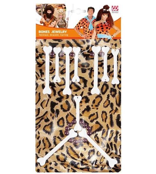 Costume Jewellery Bones Stone Age/Prehistoric Caveman/Cavewoman Set (Necklace/Bracelet/Earrings). A great dress up accessory if you want to create an impression of Fred & Wilma Flintstone or supplement your Day of the Dead, Halloween or Book Week costume.