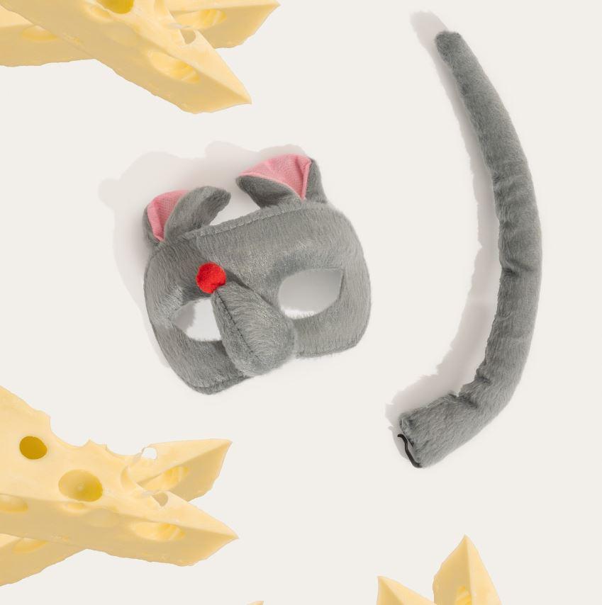 Animal Costume Mask Set Deluxe Mouse Grey.