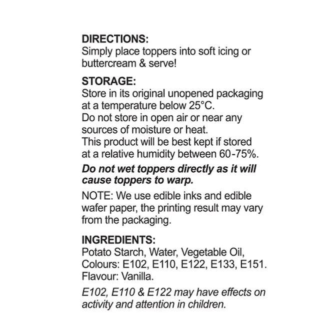 Cake/Cupcake Decorating Edible Icing Wafer Topper The Wiggles Pk/16. Compliment your cakes, cookies or desserts with these 100% edible and premium food grade coloured wafer toppers. Perfect for any occasion.