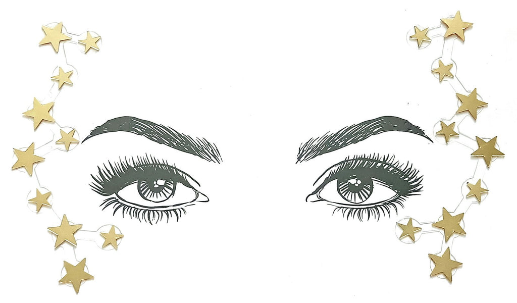 Adhesive Face/ Body Jewels. Pack Includes one set of reusable Face Jewels, simply peel and stick. Can be re applied with Eyelash Glue or Spirit gum.