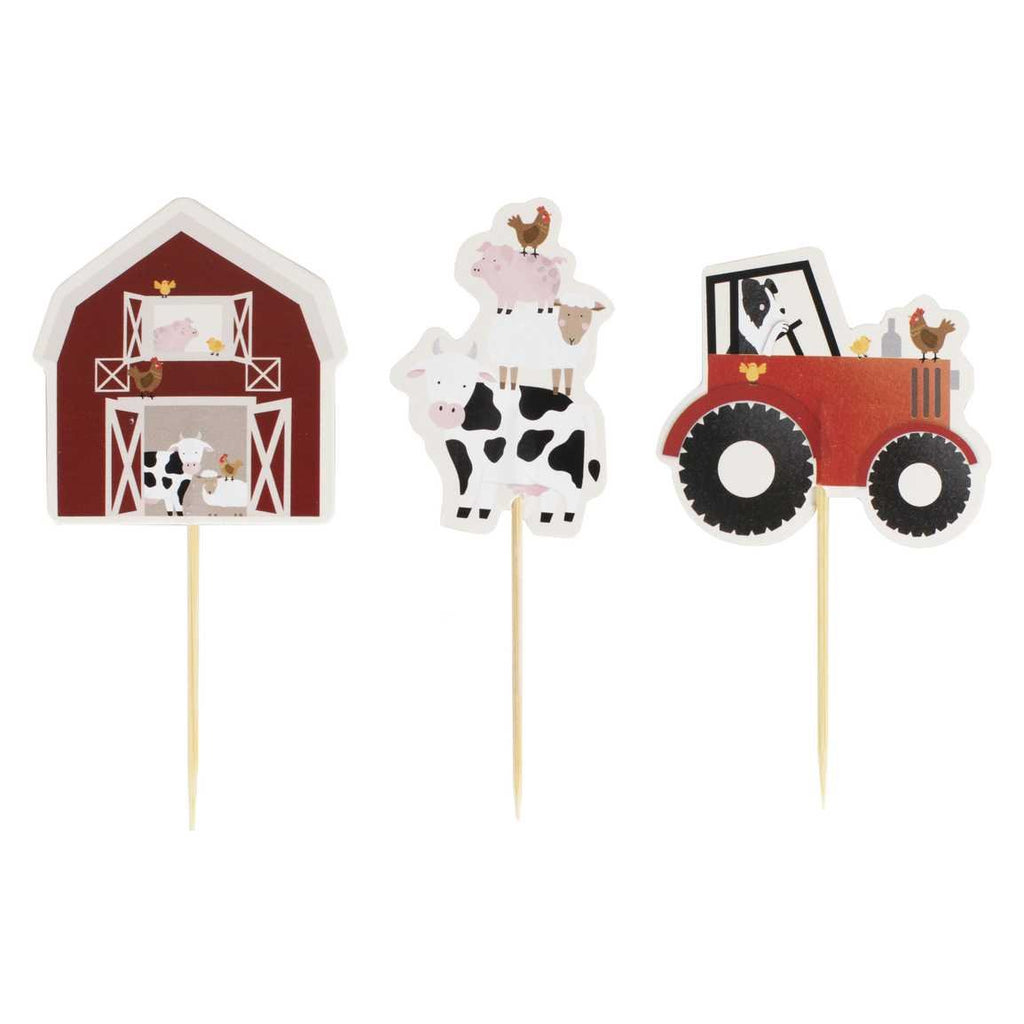 These cake decorations contain 12 x tractor, barn and animal themed cupcake toppers measuring 10cm (H).