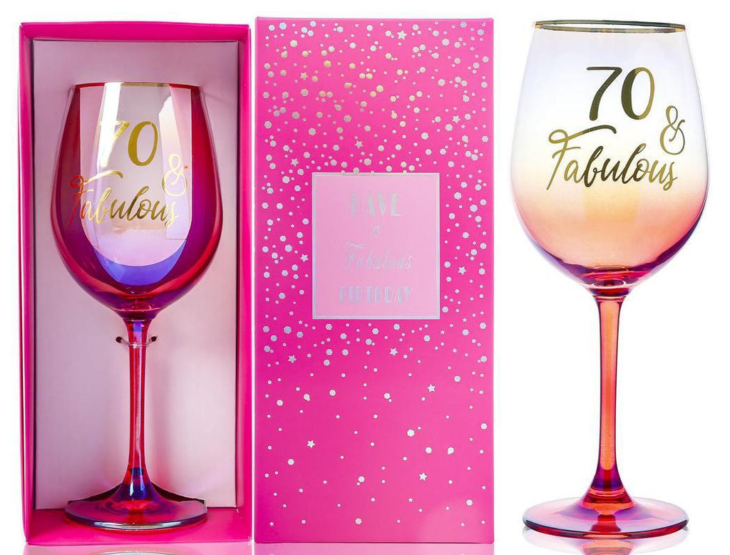 Gift Stemmed Wine Glass 70th & Fabulous Birthday Shimmy