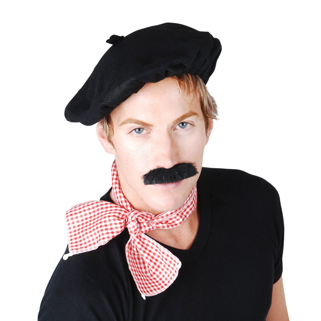 Hat Beret Black French/France. Beret only - scarf and moustache not included.