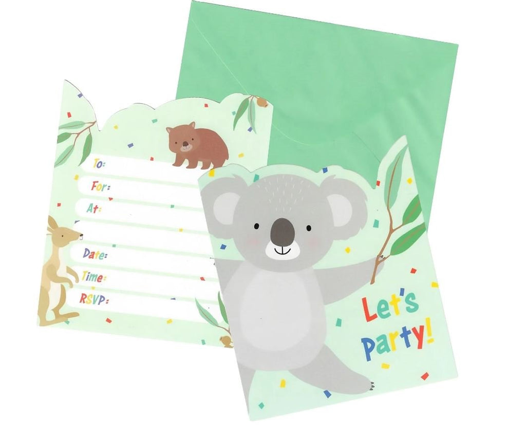 PARTY INVITATION PK/8 AUSTRALIAN BUSH ANIMALS
