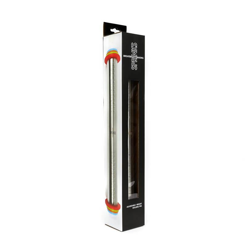 A great addition to the SPRINKS range of functional kitchen utensils. Stainless steel rolling pin with with removable discs for creating different pastry thickness. Select from 2mm, 4mm, 6mm or 10mm disc size.Measuring guide on rolling pin surface.Suitable for pizza bases, lasagne sheets, puff pastry, cookie dough and icing sheets.Use without discs as a conventional rolling pin. Discs and rolling pin are dishwasher safe