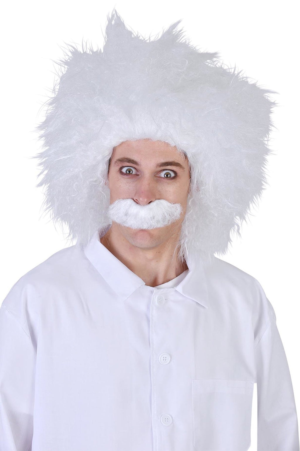 – 1 x Voluminous white wig (static-charged genius look guaranteed)